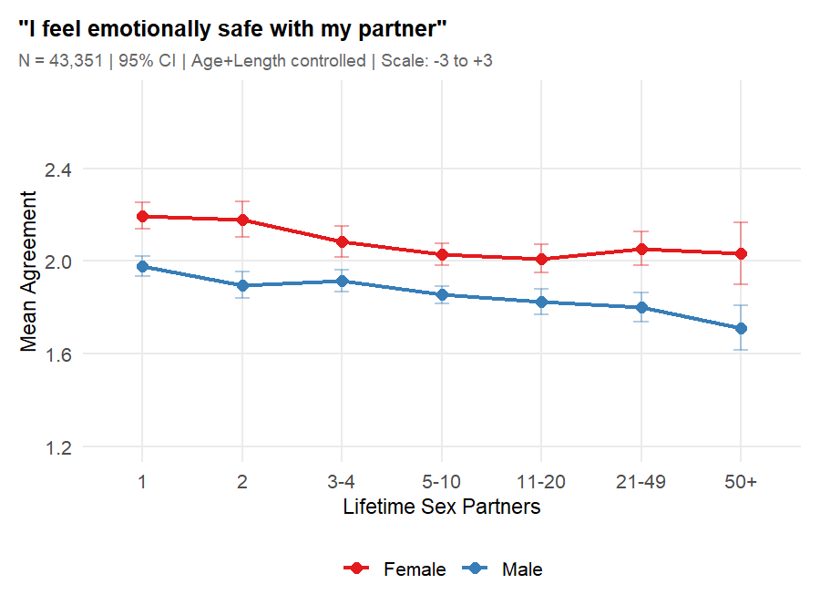 Despite the title of this post, I want to remind you this is all correlative, not necessarily causative. Maybe the type of people who choose to bang a lot of people are just built different than the kind of people who don’t, etc.